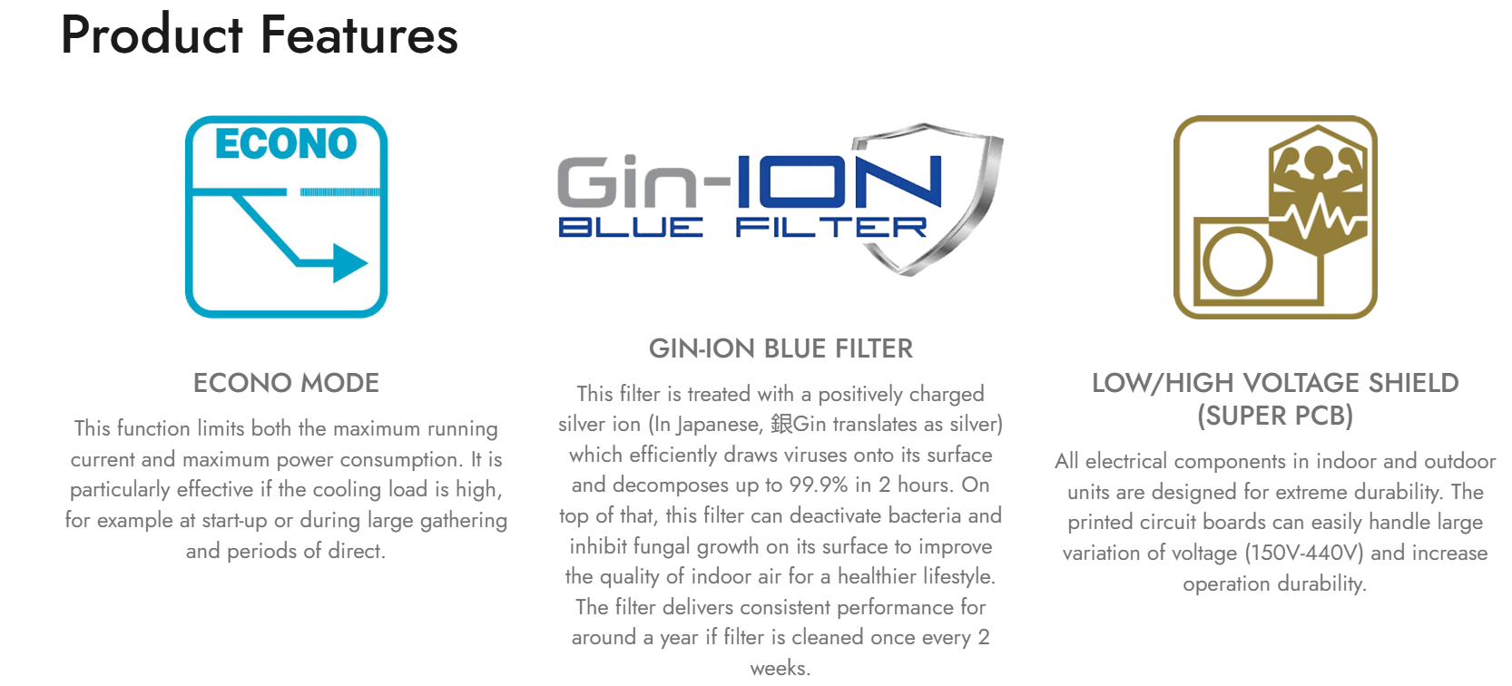 Dimension - Outdoor (H x W x D) | (mm) | 418 x 695 x 244 | 550 x 675 x 284 | 615 x 845 x 300 | 695 x 930 x 350 | |