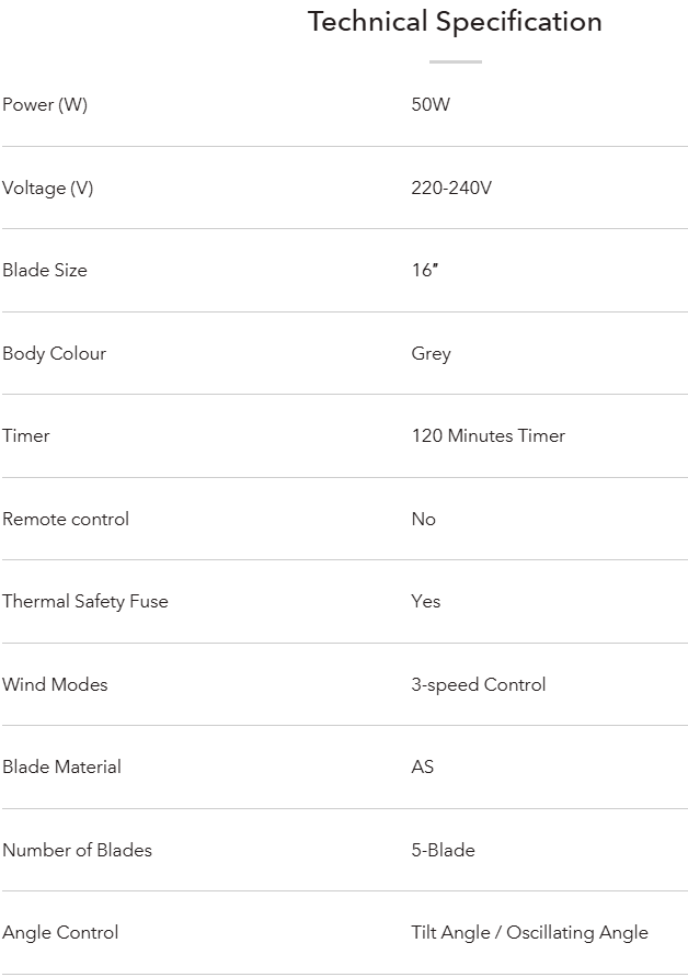 ELBA 16" STAND FAN ESF-E1639TM(GR) - 5 BLADES (16 INCHES / 50W)