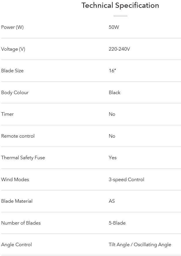 ELBA 16" STAND FAN ESF-J1656(BK) - 5 BLADES - BLACK (16 INCHES / 50W)