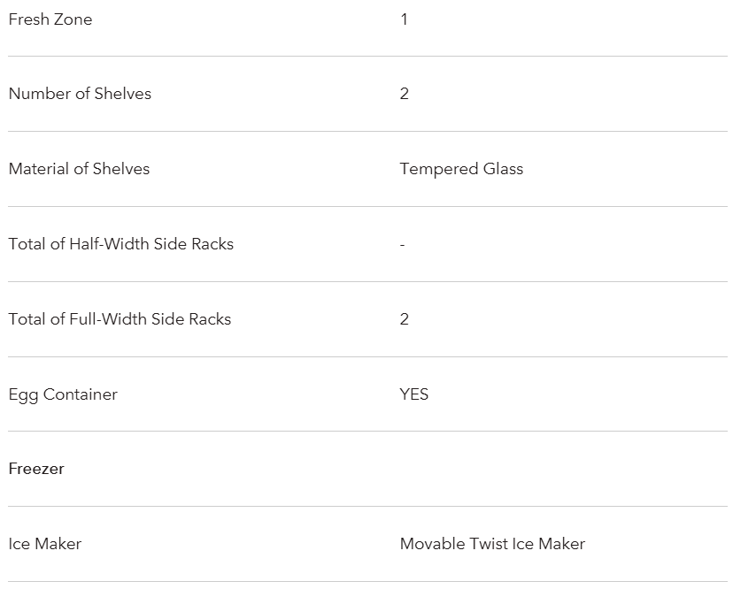 | Freezer Drawer | - |