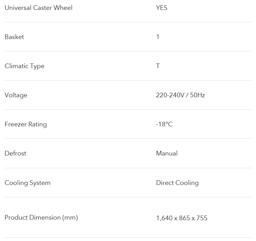 Freezer Rating | -18°C |