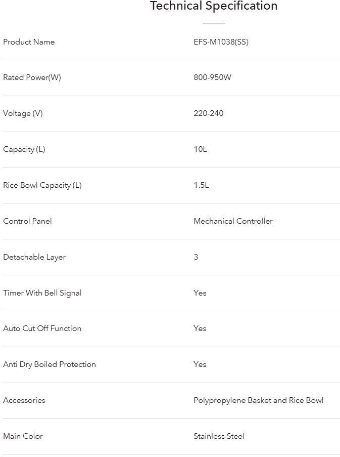 ELBA FOOD STEAMER EFS-M1038(SS) - 3 DETACHABLE LAYERS (10L)
