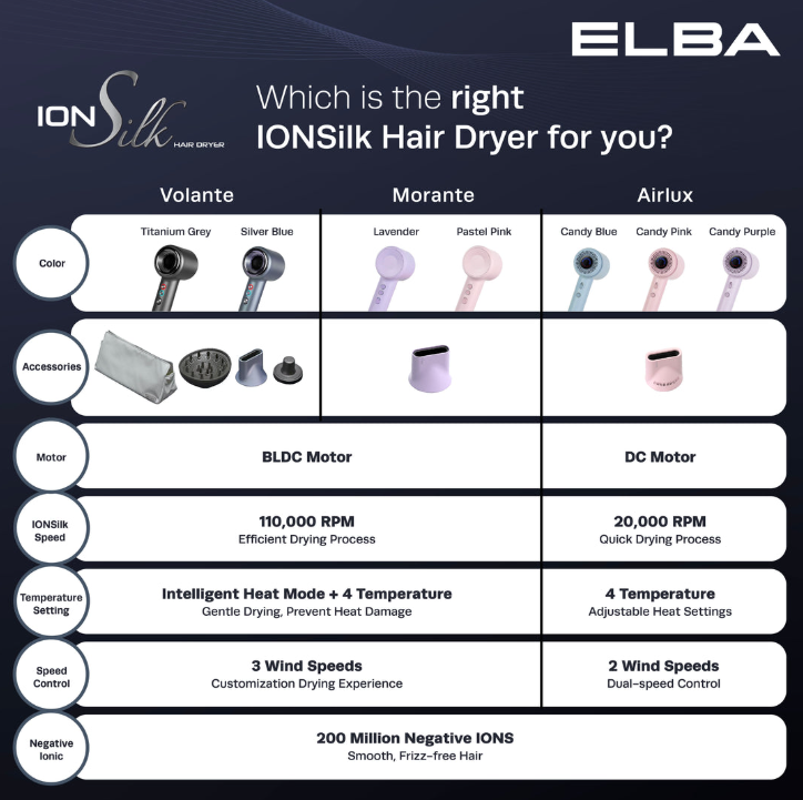 ELBA HAIR DRYER AIRLUX EHD-Q4643D(BL) - DC MOTOR, CANDY BLUE (1,600W)