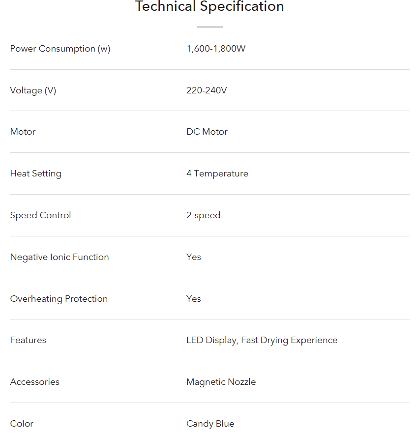 Introducing our Hair Dryer with a powerful DC motor, designed to deliver efficient and quick drying results.