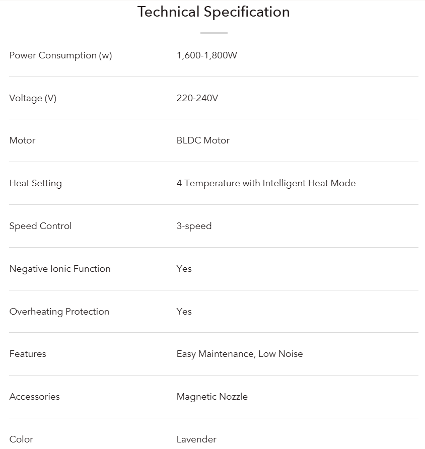 Introducing our cutting-edge Hair Dryer, equipped with a powerful BLDC motor that operates at an impressive 110,000 RPM.