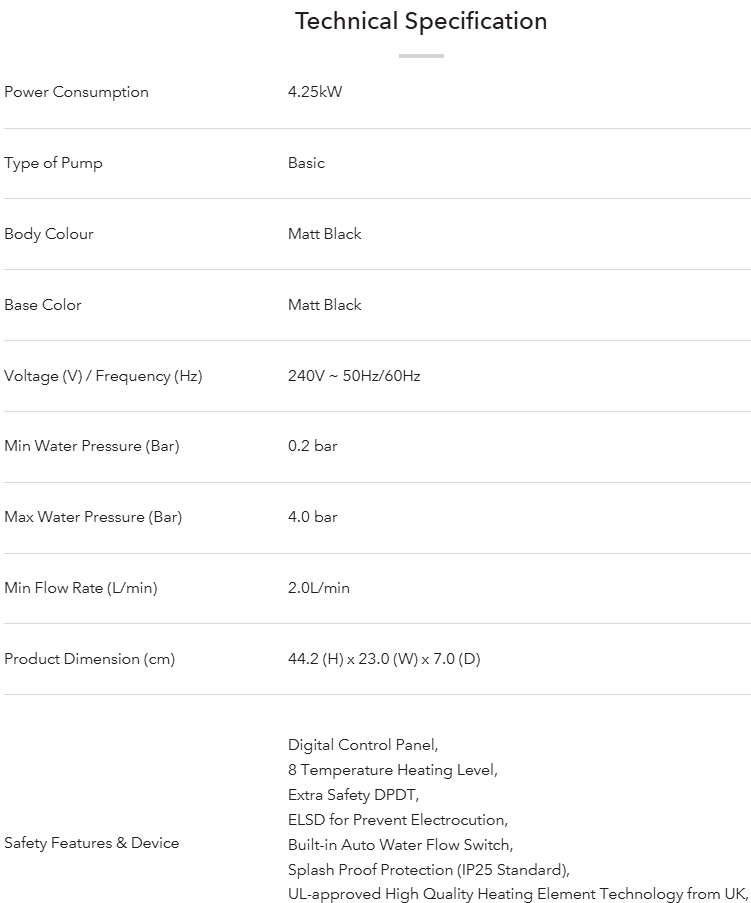 ELBA NON PUMP INSTANT WATER HEATER EVVO SERIES EWH-Q4211(MB)