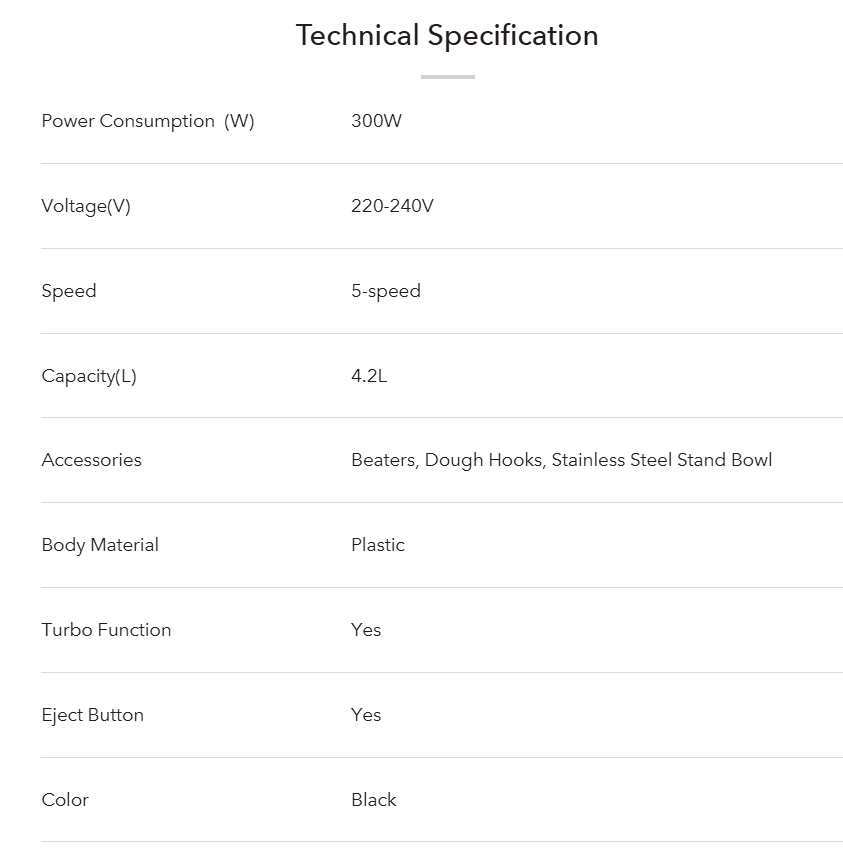 ELBA STAND MIXER ESMB-9925S - 5 SPEED, STAINLESS STEEL BOWL (4.2L / 300W)