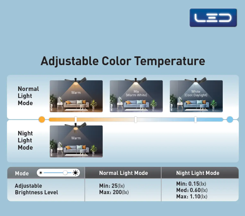 Innovative convenience Mobile App Control compatible, 60 inch 5-blade, Ceiling fan with DC motor. Can be operated by remote control too. It also has the LED Lighting with switchable modes and brightness.