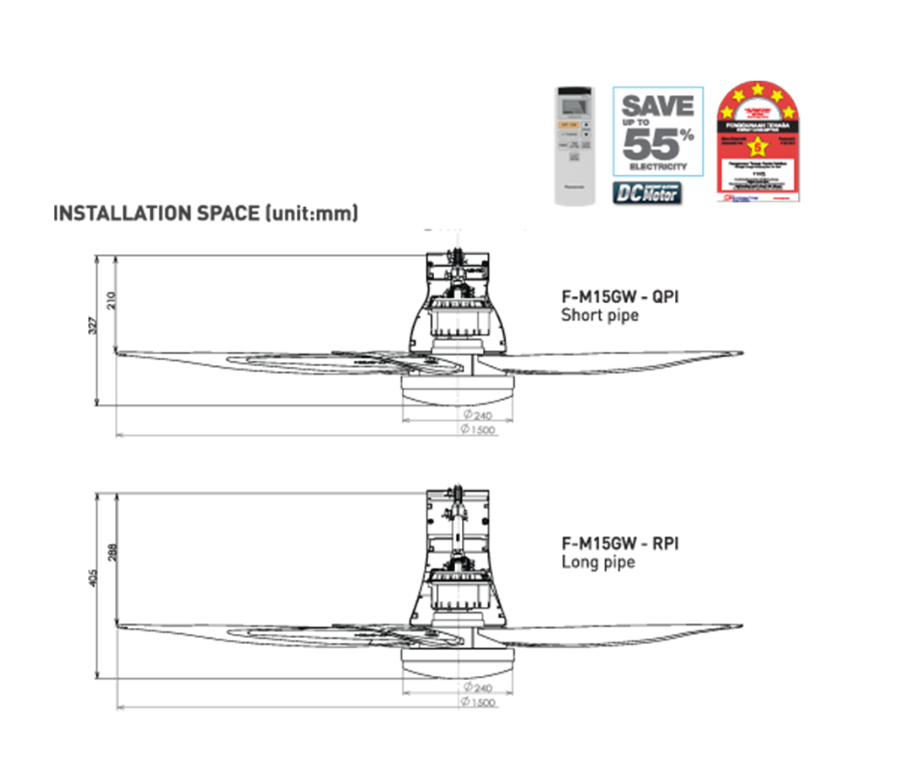 PANASONIC F-M15GWVBSQH (SHORT PIPE) - CEILING FAN (60 INCH) WITH LIGHTS