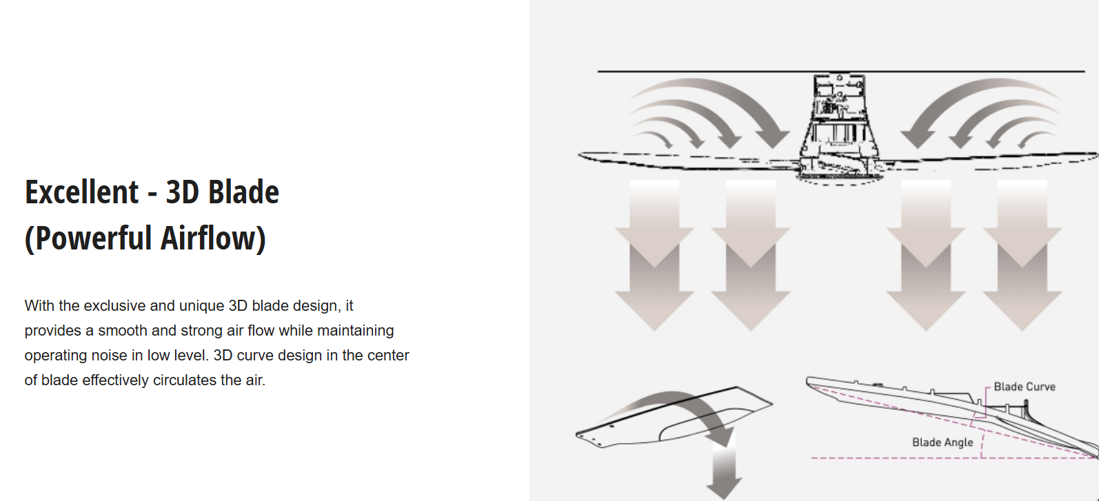 With the exclusive and unique 3D blade design, it provides a smooth and strong air flow while maintaining operating noise in low level. 3D curve design in the center of blade effectively circulates the air.