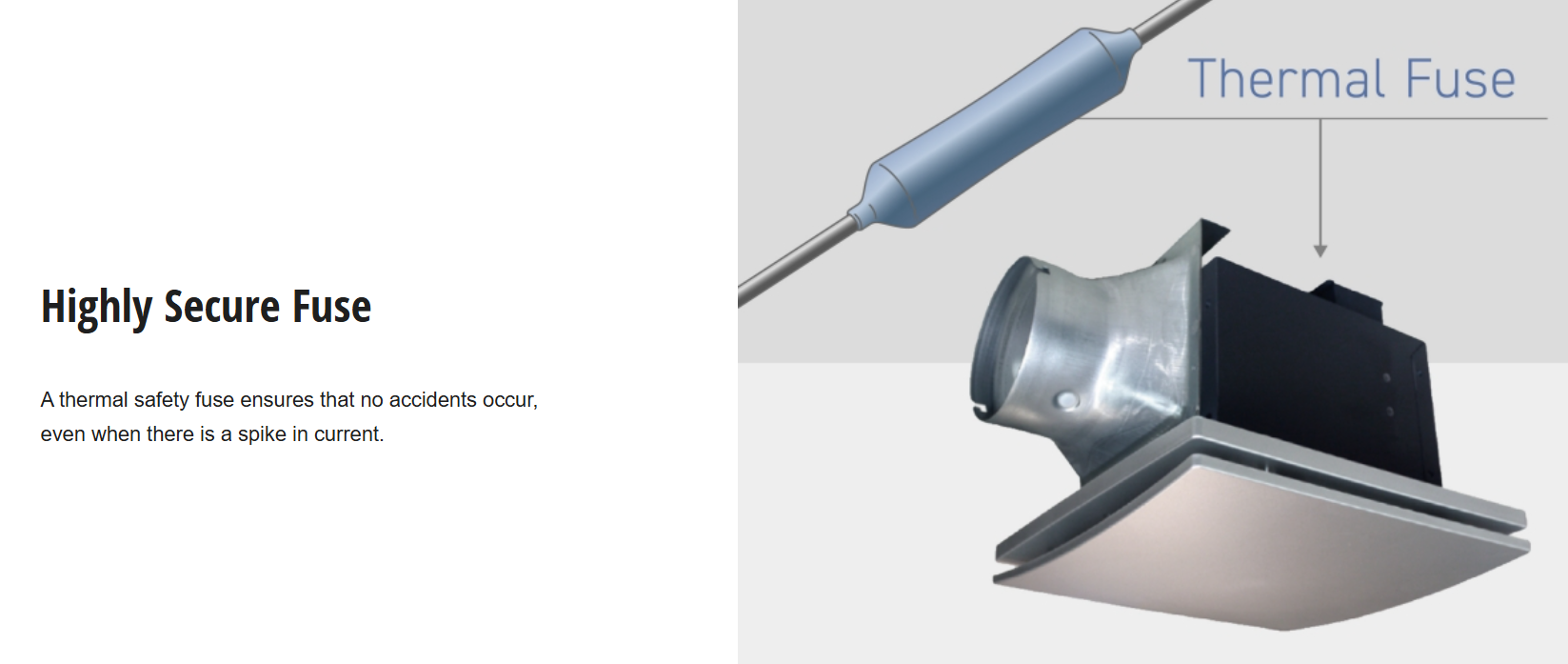 Humidity, dirty air, and unpleasant odours are directly expelled outside. Easy installation and a safe design with a built-in thermal fuse are also features.