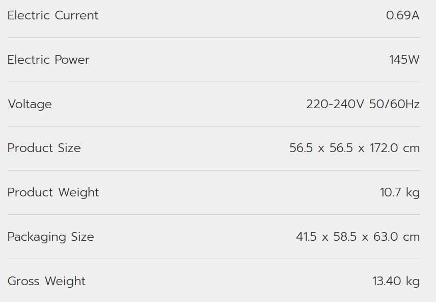 - Certified safety IEC 60335-1 : 2010, IEC 60335-2-80 : 2015 from SIRIM Malaysia