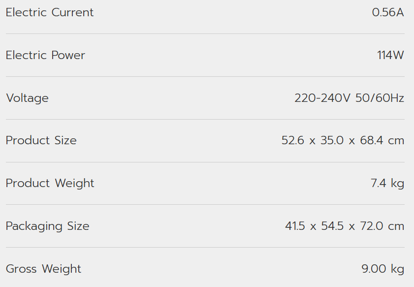 - Certified safety IEC 60335-1 : 2010, IEC 60335-2-80 : 2015 from SIRIM Malaysia