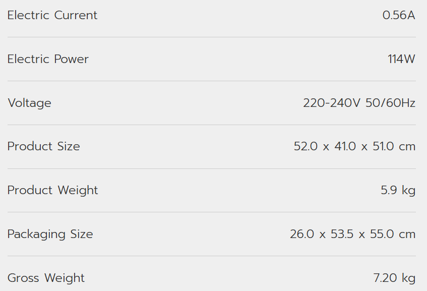 - Certified safety IEC 60335-1 : 2010, IEC 60335-2-80 : 2015 from SIRIM Malaysia