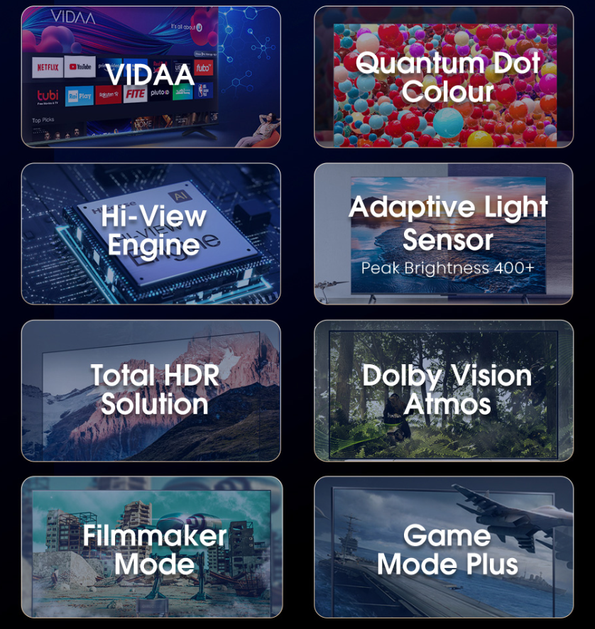 Dimensions with stand (W x H x D) – mm | 2186×1351×532 (98″) 1449×905×293 (65″)