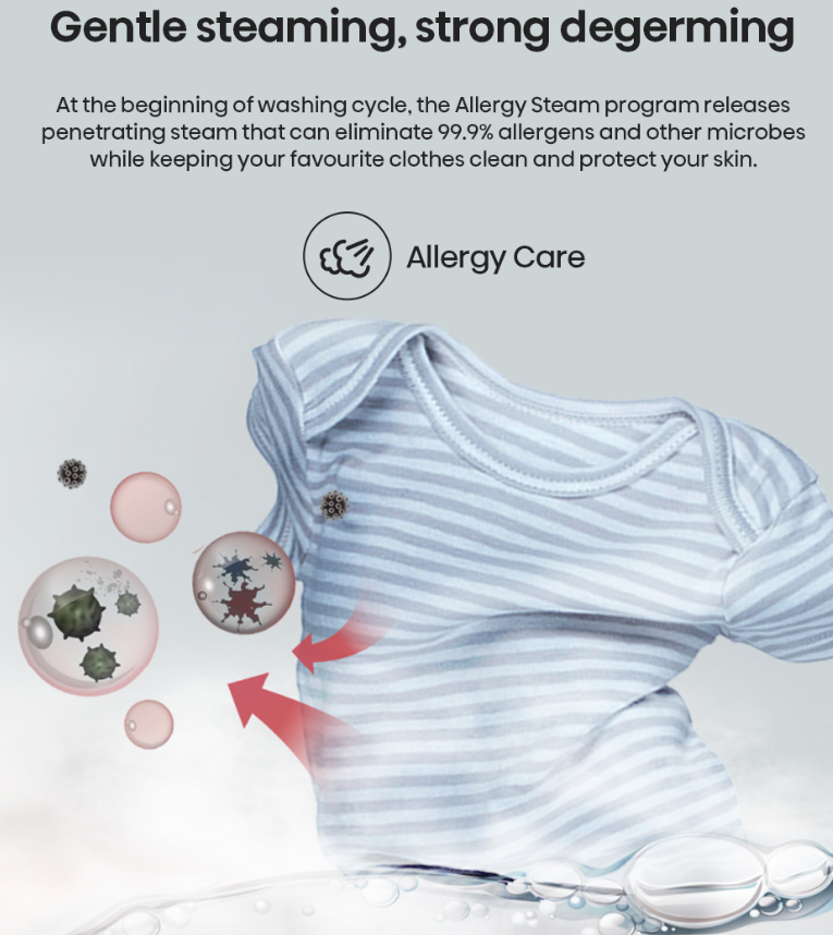 Washing Program | Cotton/ AI Wash/ Mix/ Quick/ Wash & Dry 60’/ Baby Care/ Colors/Air Wash/ Bedding/ Rinse + Spin/ Cloudy Wash |