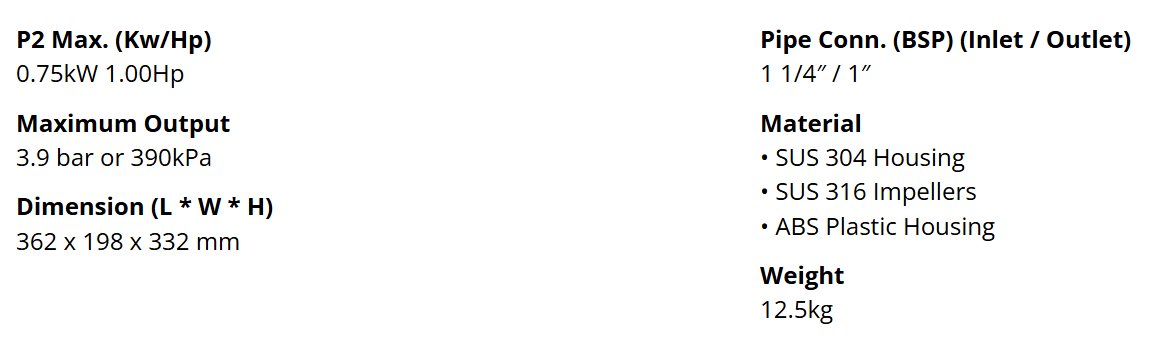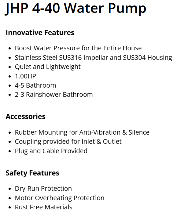 JOVEN JHP 4-40 WATER PUMP 1.0HP 3.9BAR