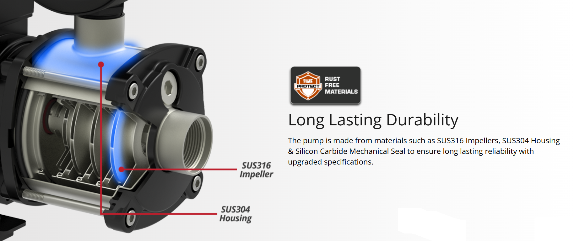 - Stainless Steel SUS316 Impellar and SUS304 Housing