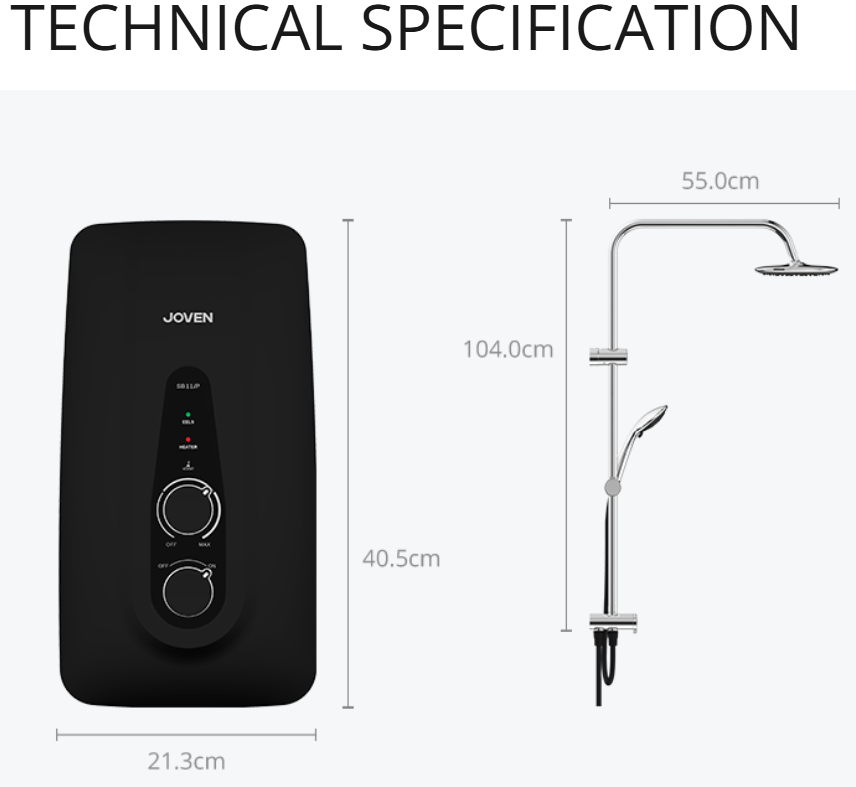 JOVEN SB11iP-RS DARK SILVER (3.6kW) INSTANT WATER HEATER DC PUMP
