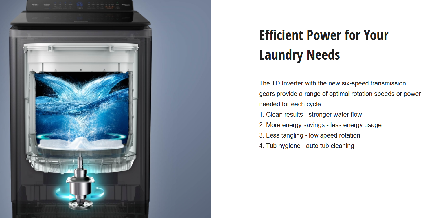 Powered by the TD Inverter, the Active Wave Pulsator with 8-wing design creates a powerful vertical water flow for washing with a scrubbing effect. Clothes are repeatedly moved in a scrubbing motion, removing tough stains effectively.