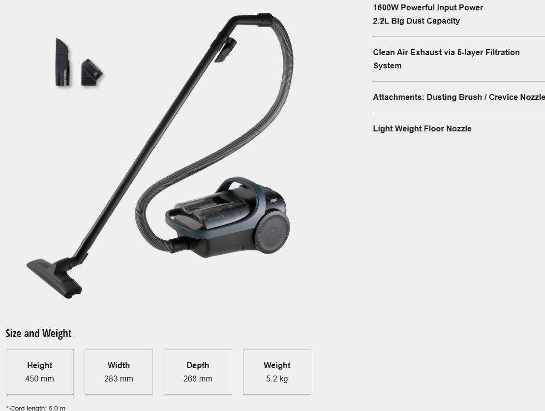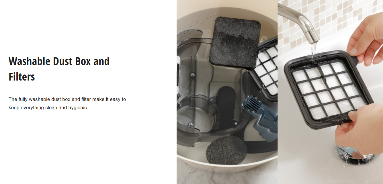 The fully washable dust box and filter make it easy to keep everything clean and hygienic.