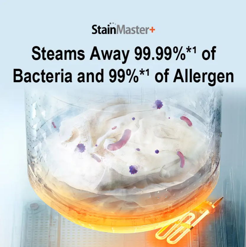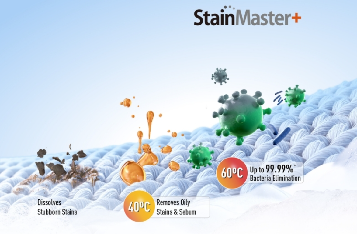Easily save time on pre-care and handwashing, no matter the type of stain and wherever they came from. The StainMaster+ simply breaks down a variety of stains and eliminates invisible bacteria on fabrics at the ideal water temperature with a scrub wash effect.