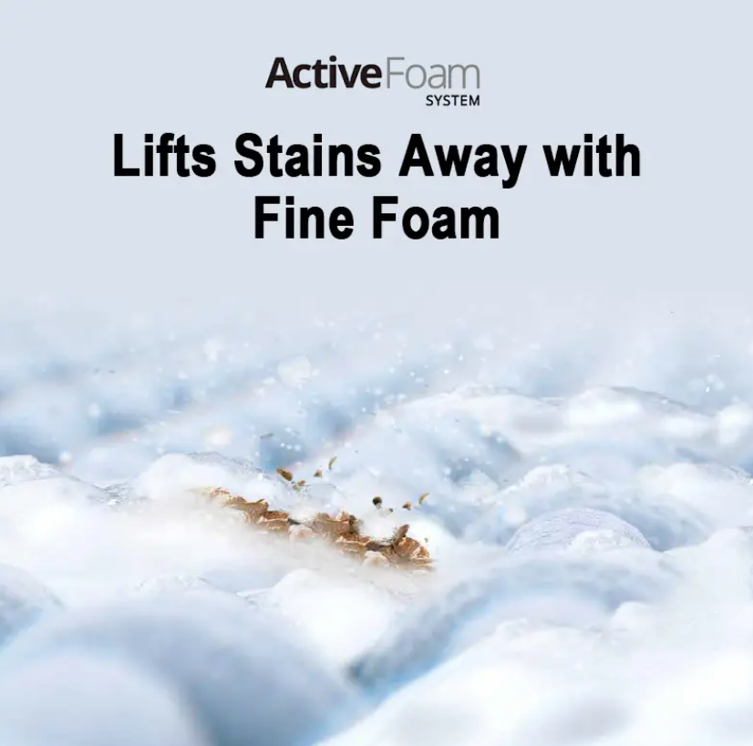 The ActiveFoam System creates fine, dense foam that penetrates deep into fabric to thoroughly remove dirt and ensure cleaner results.