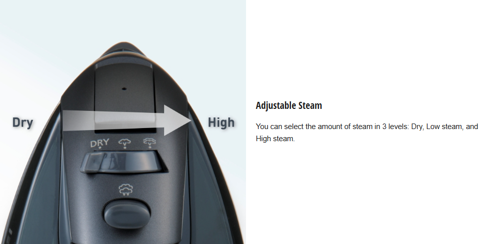 You can select the amount of steam in 3 levels: Dry, Low steam, and High steam.