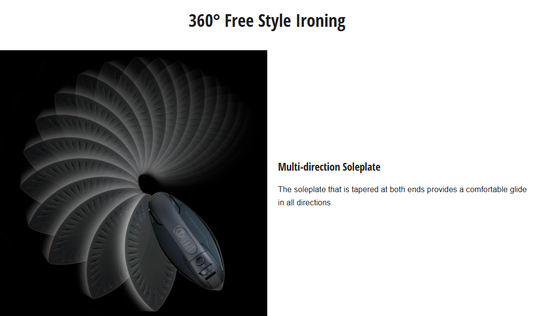 The curved soleplate prevents fabric from bunching up to provide a smoother, quicker, and hassle-free ironing experience.