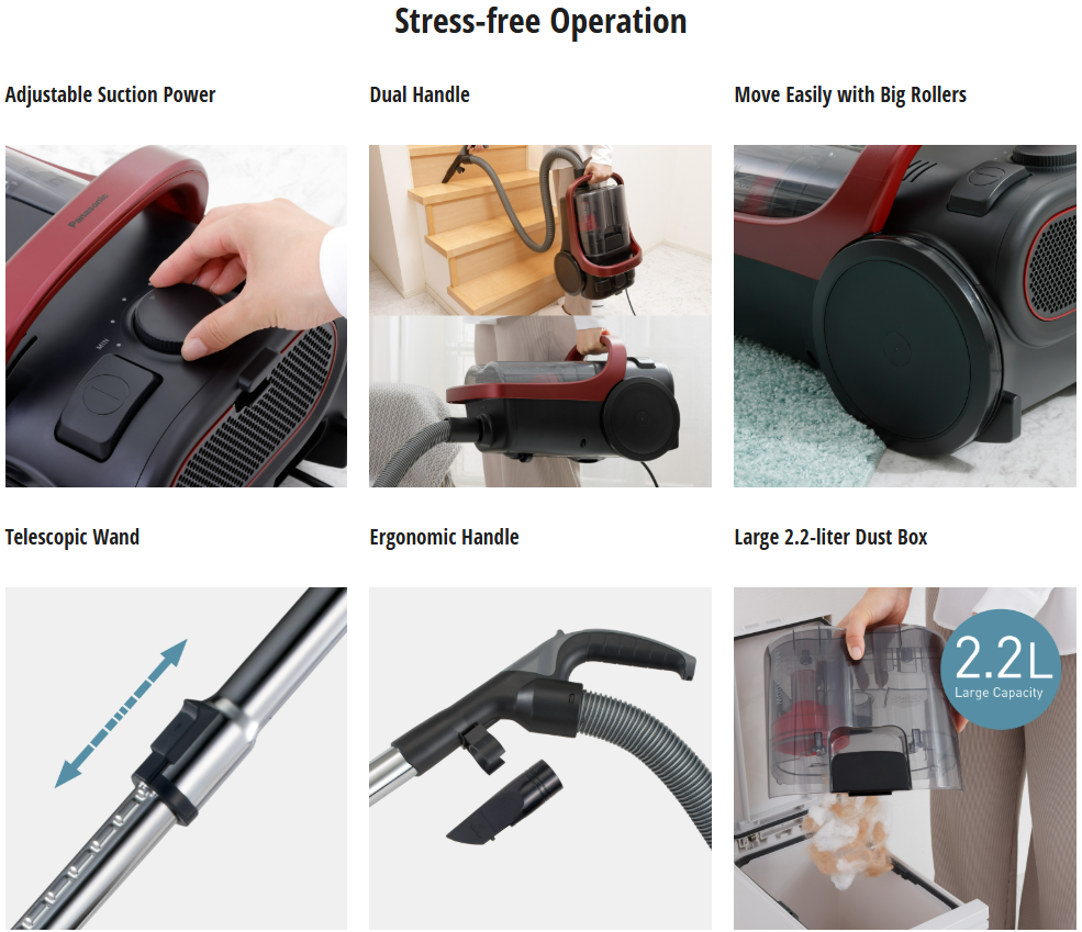 - Large 2.2 Liter Dust Box