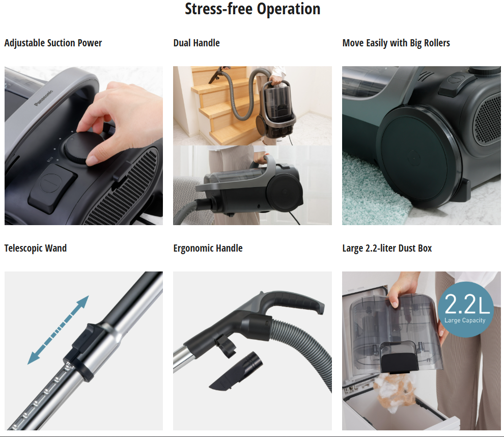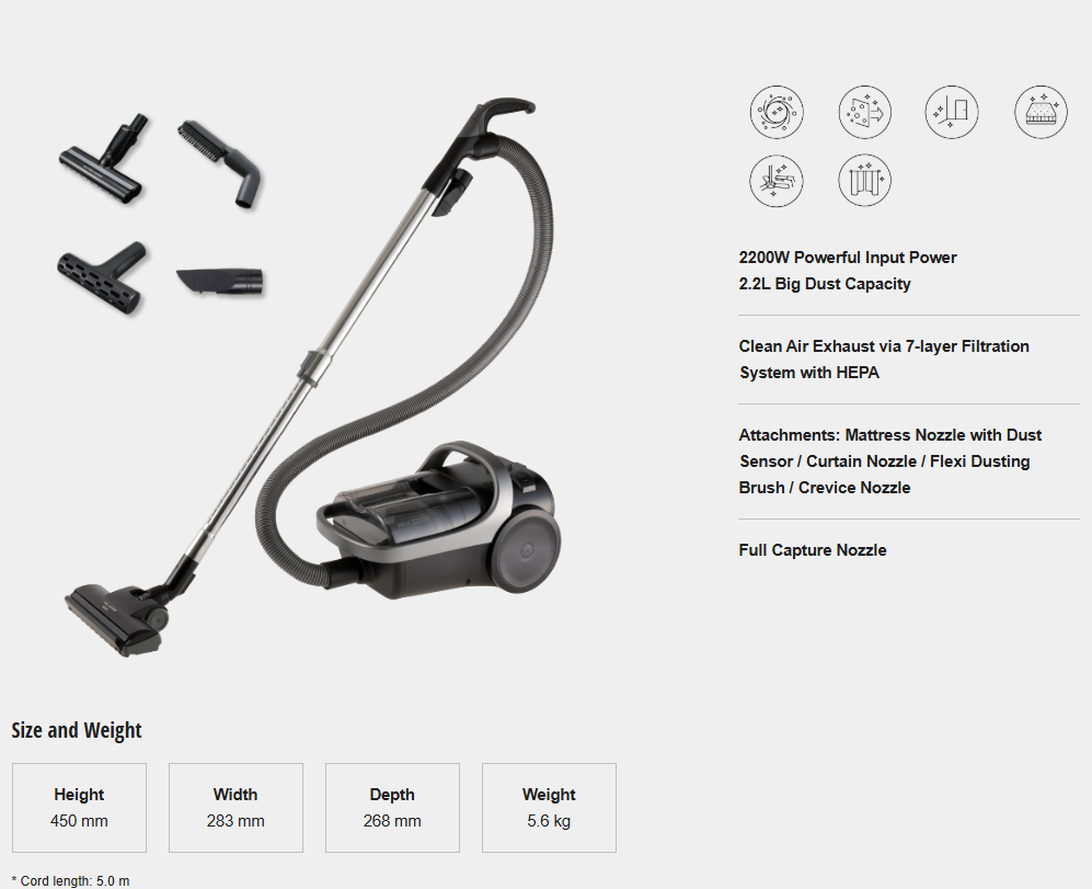PANASONIC 2200W CYCLONE BAGLESS VACUUM CLEANER WITH HEPA FILTER MC-CL609HV47