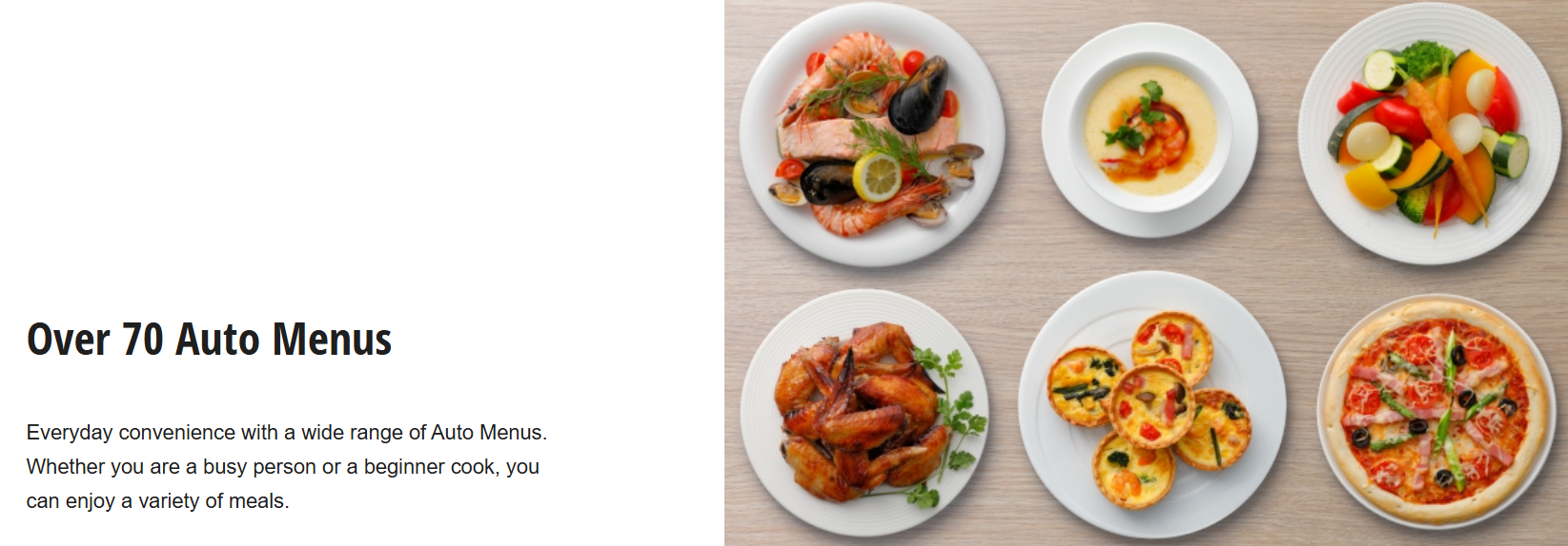 Everyday convenience with a wide range of Auto Menus. Whether you are a busy person or a beginner cook, you can enjoy a variety of meals.