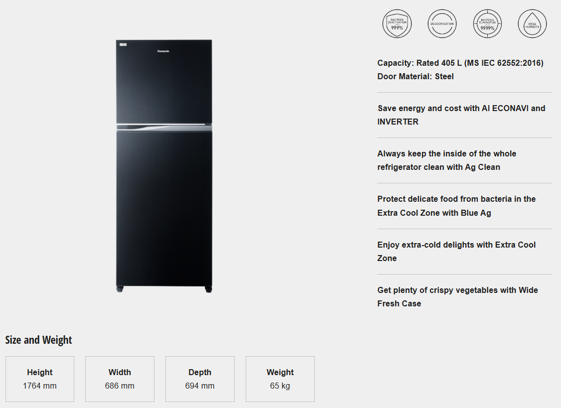 PANASONIC 450L 2 DOOR TOP FREEZER REFRIGERATOR NR-TX461CPKM