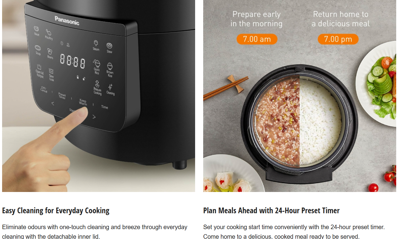 Set your cooking start time conveniently with the 24-hour preset timer. Come home to a delicious, cooked meal ready to be served.