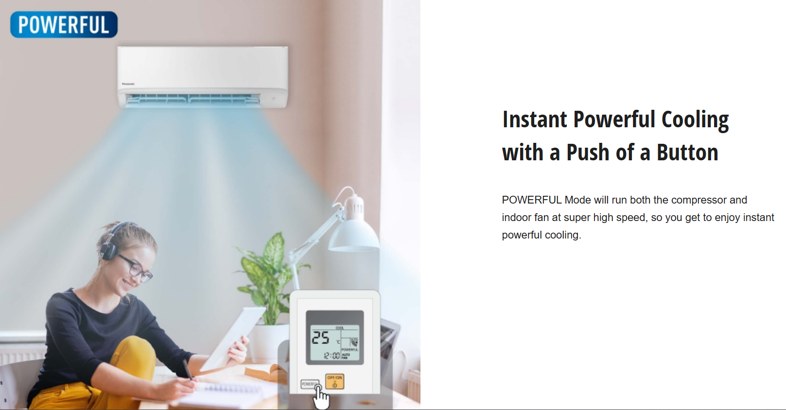 POWERFUL Mode will run both the compressor and indoor fan at super high speed, so you get to enjoy instant powerful cooling.