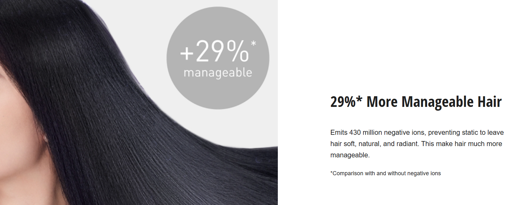 Emits 430 million negative ions, preventing static to leave hair soft, natural, and radiant. This make hair much more manageable.