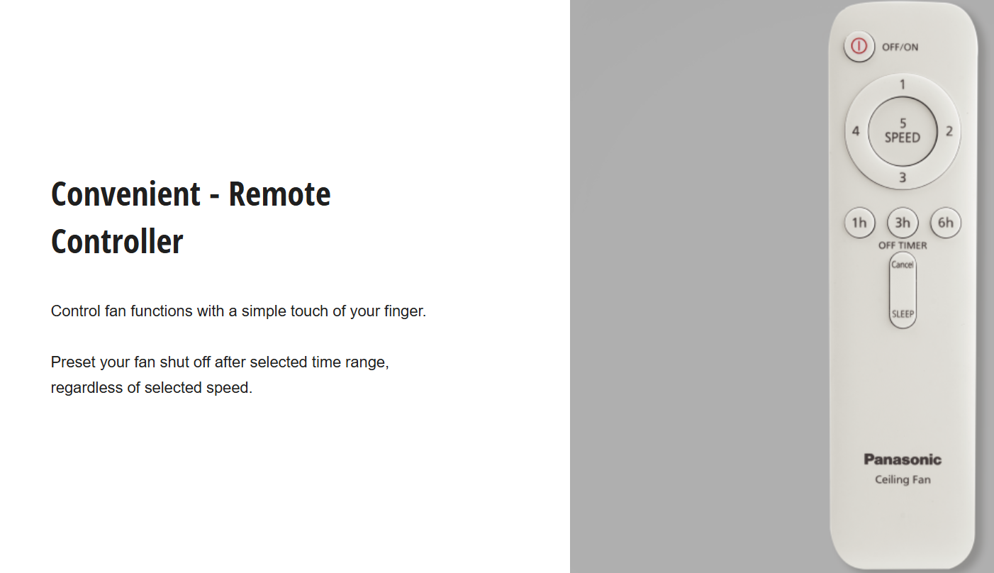 Preset your fan shut off after selected time range, regardless of selected speed.
