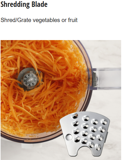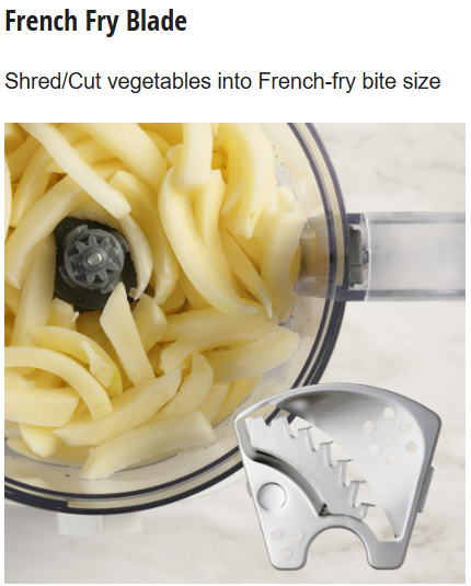 The blade storage stand stores the slicing blade, shredding blade and French-fry blade in the bowl. This helps you to manage space and easily locate cutter accessories in one place effectively.