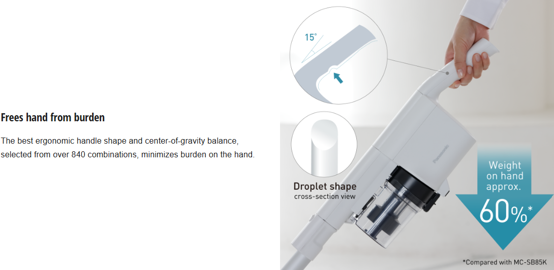 The best ergonomic handle shape and center-of-gravity balance, selected from over 840 combinations, minimizes burden on the hand.