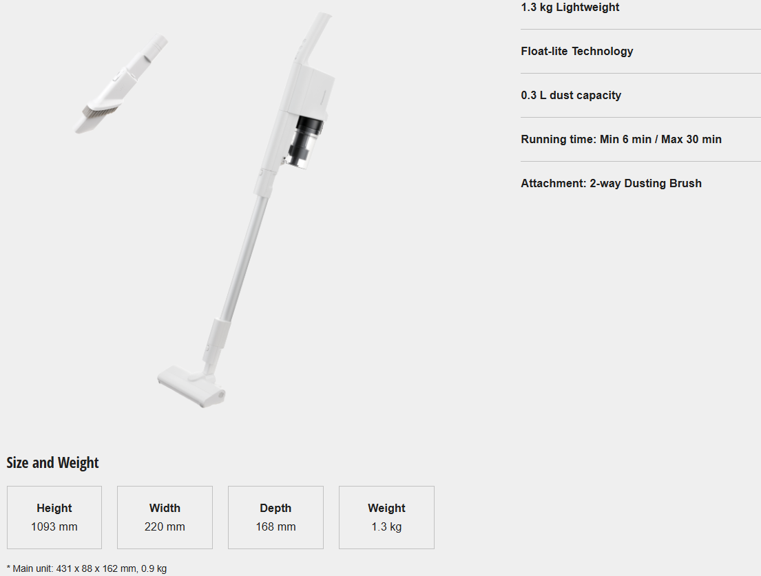 Easy cleaning anytime with Float-lite Technology that lets you move around smoothly. Lightweight in design and easy to maintain too.