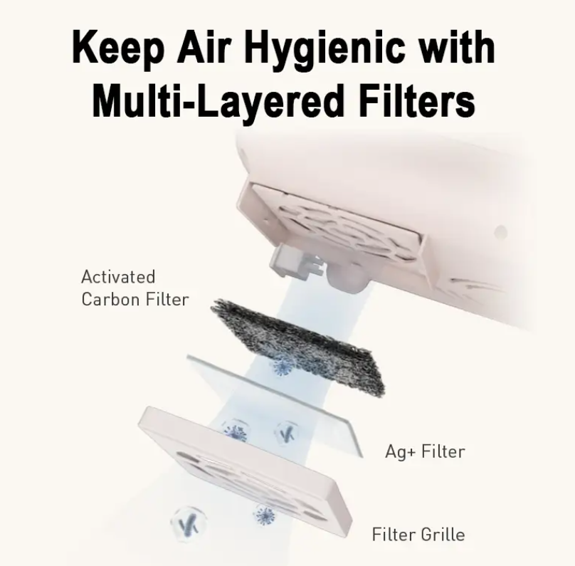 Air filtration through a large and multi-layered filters effectively blocks air pollutants, preventing secondary pollution and ensuring safety at every point.