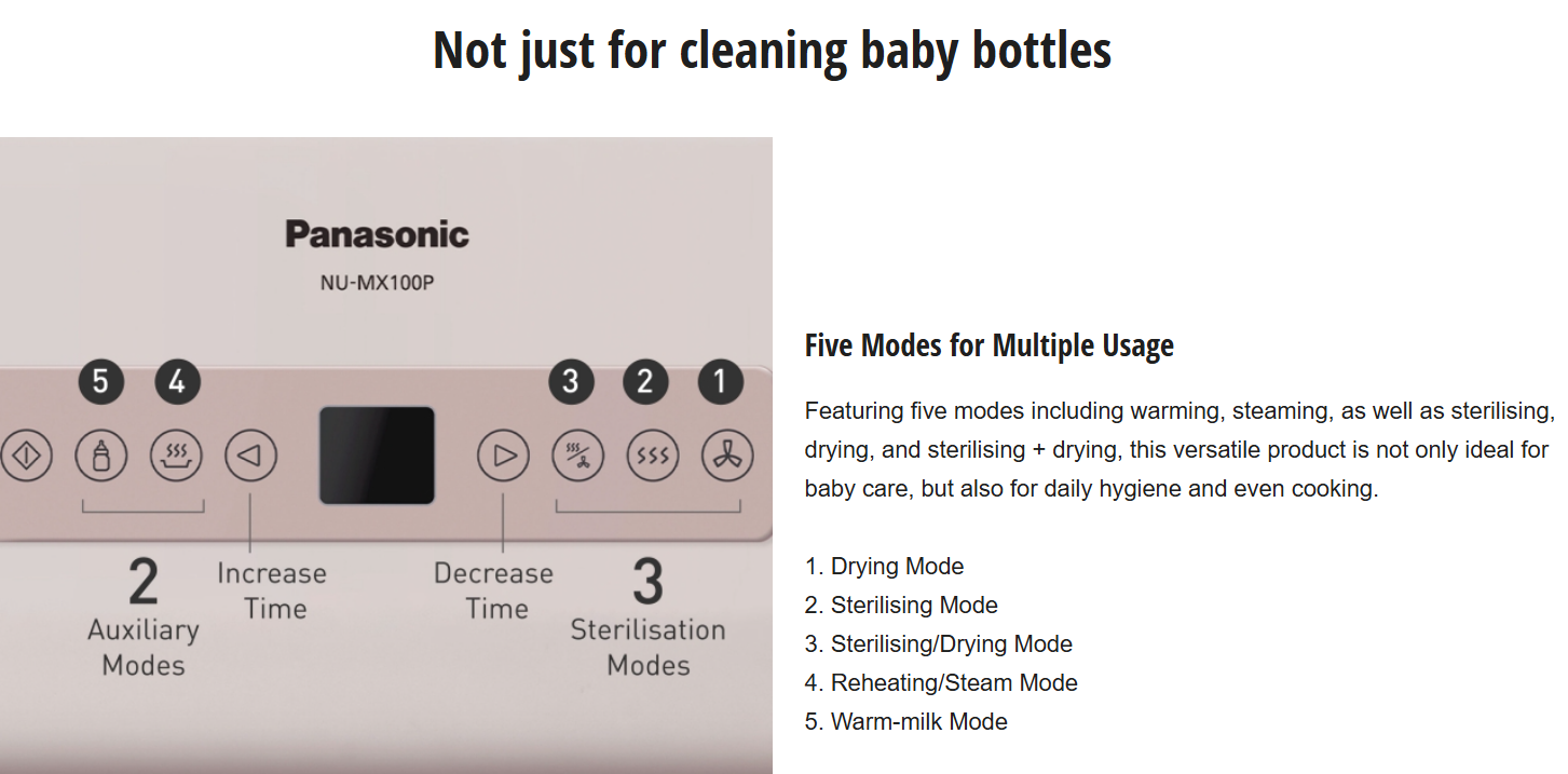 PANASONIC MILTIFUNCTIONAL BABY BOTTLE STEAM STERILIZER AND DRYER NU-MX100PMPQ