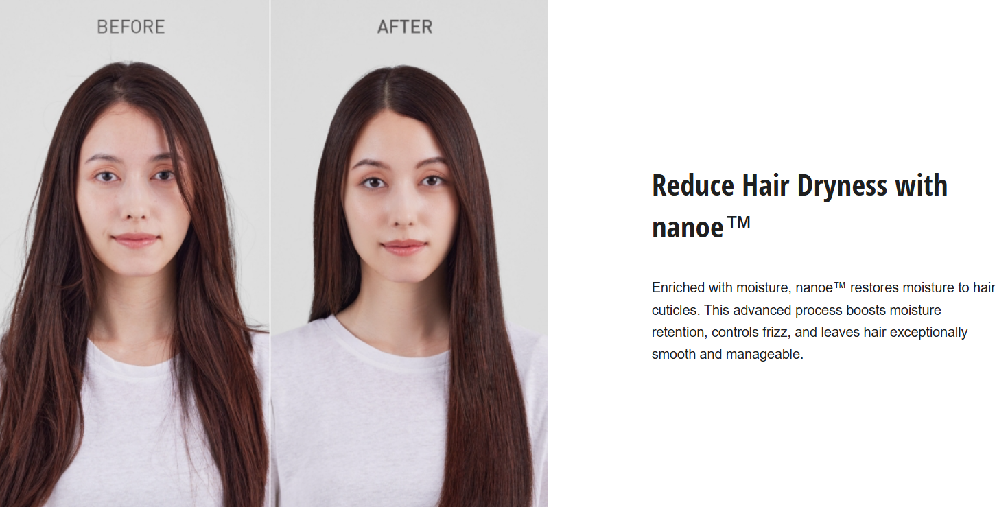 Address hair dryness and scalp concerns with nanoe™ and Mineral. This innovation infuses moisture into your hair strands and nourishes the scalp, effortlessly promoting healthier and smoother hair.