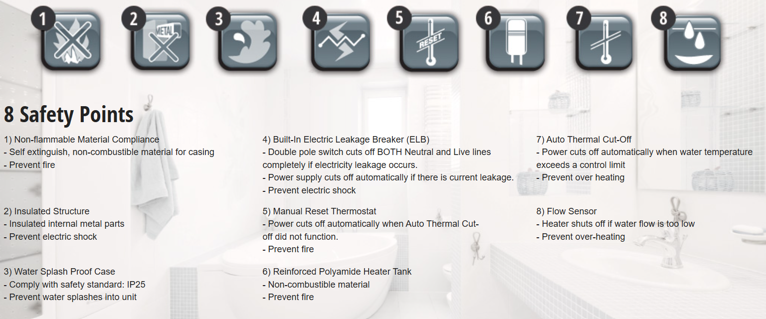 Panasonic's range of standard home shower 3RL1 allows one to enjoy the basic comforts of a home shower that is both user-friendly and safe for the entire family. This model features basic yet convenient shower functions for hassle-free everyday use