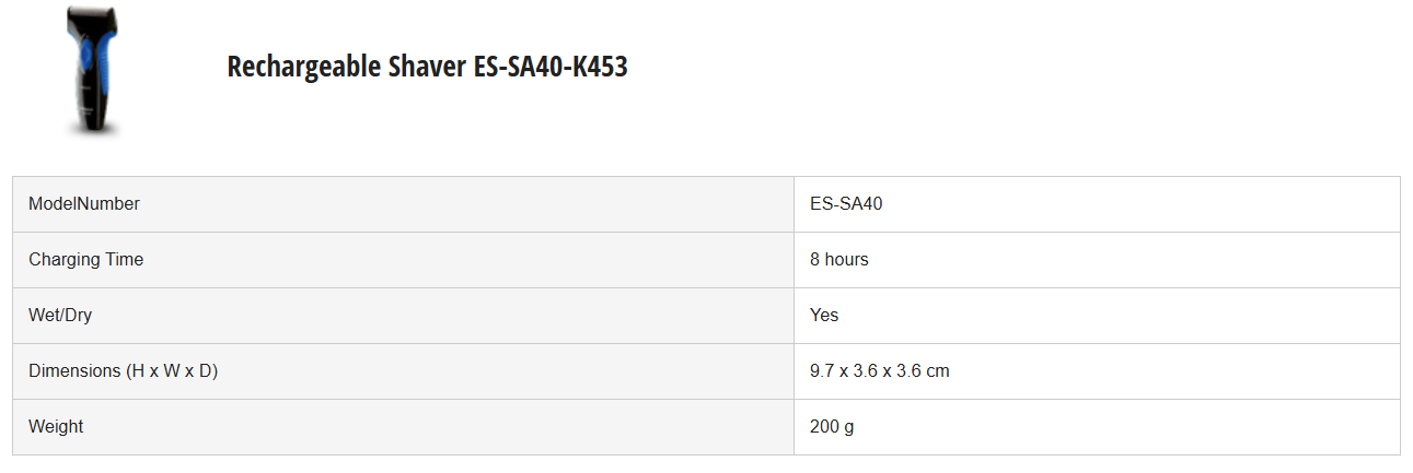 PANASONIC RECHARGABLE SHAVER ES-SA40-K453