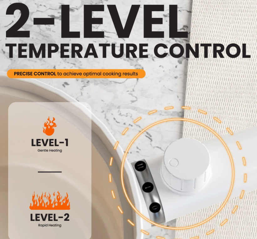 - This cooker uses an upgraded full heating plate which keeps your food heated evenly and longer. Compared to conventional pots, this non stick coating is more durable making it easier to cook and taste different types of food.