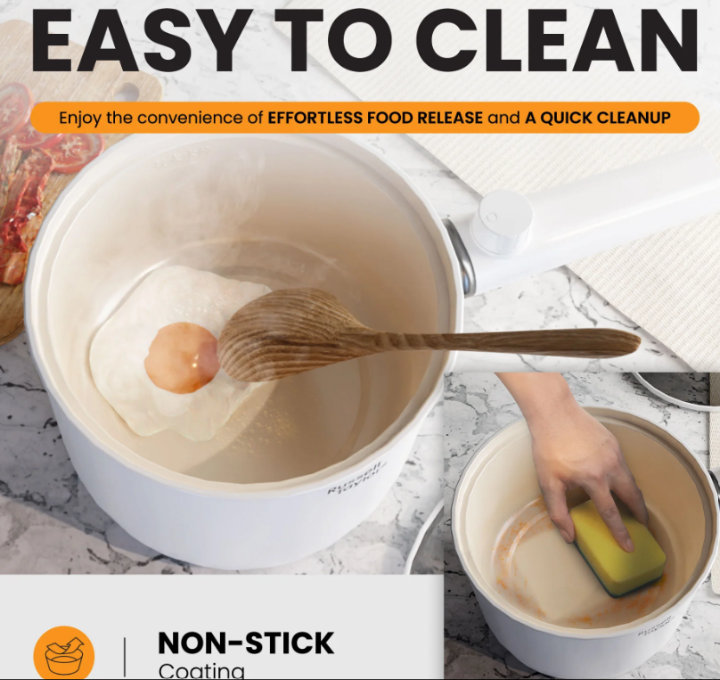 - All Russell Taylors pots are coated using a eco-friendly food grade non stick coating, ensuring that your food is never contaminated and preventing your food from sticking to the pot while cooking.