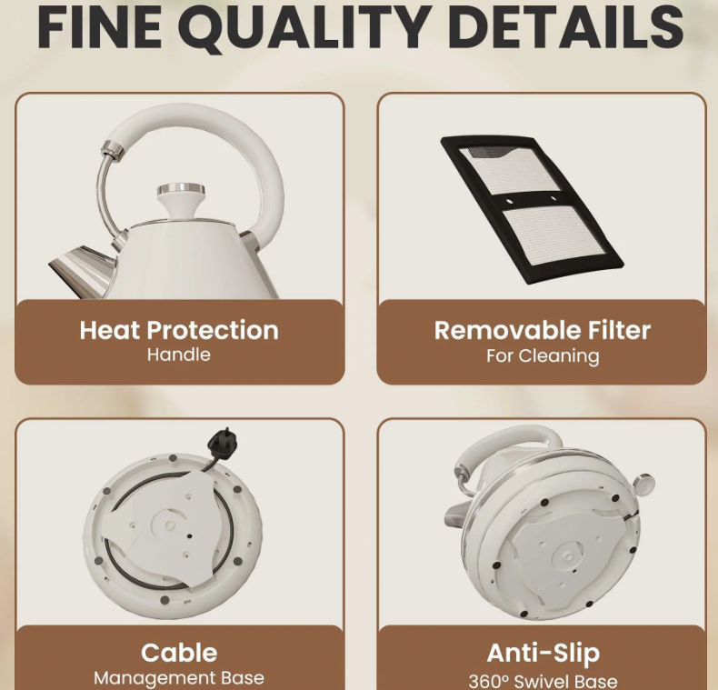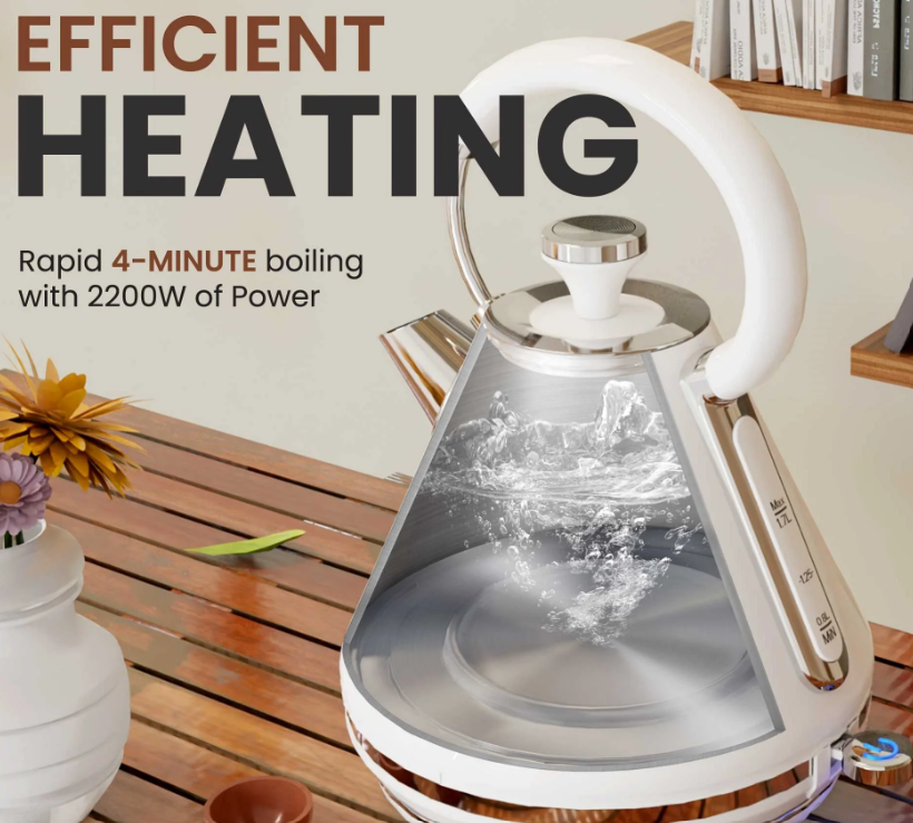 - FASTEST BOIL - Equipped with LED lights on the control which indicates the kettle is heating. The controller with Russell Taylors Speed Boil circuitry will boil the water lightning-fast and be ready to use for tea, oatmeal, coffee, pasta, and much more.