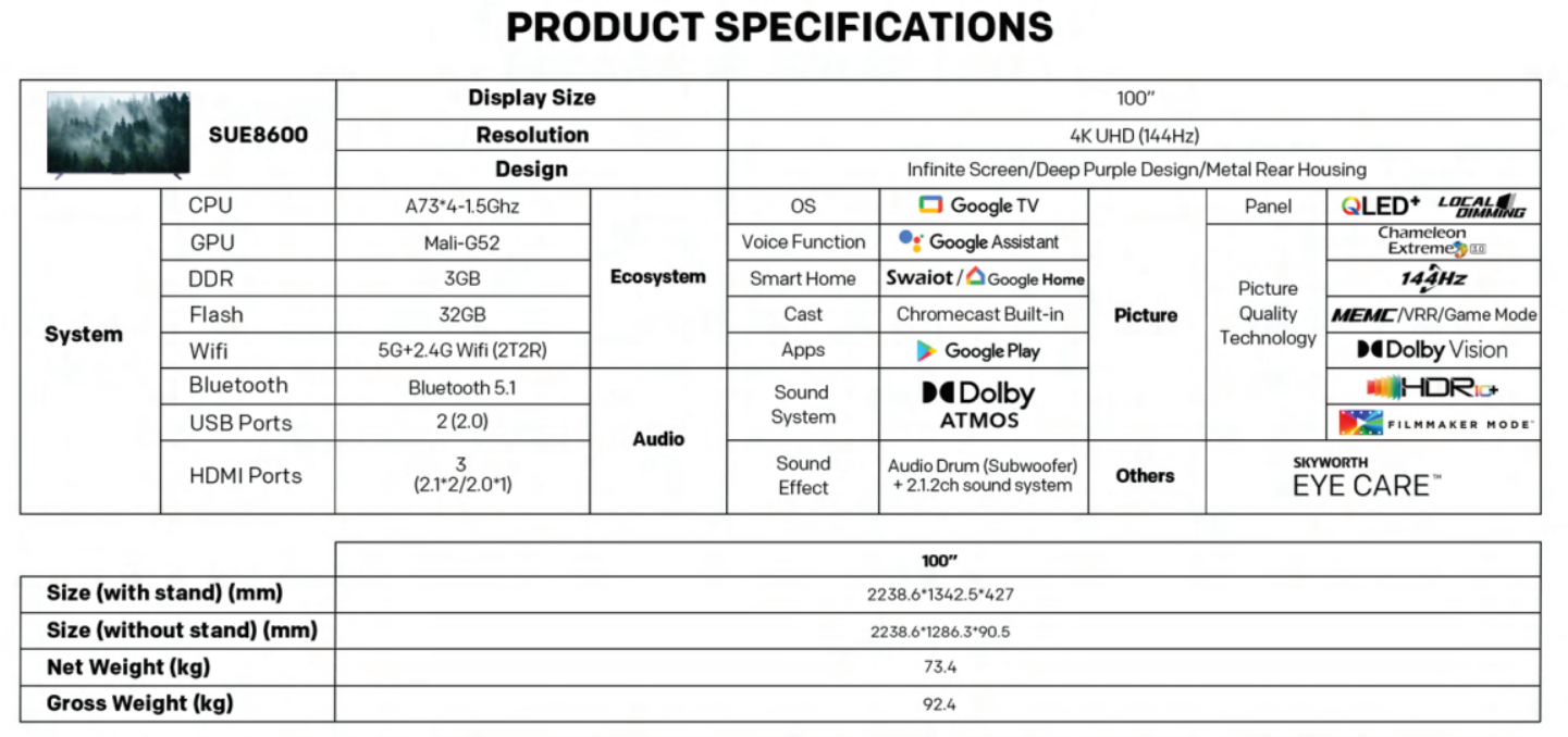 100SUE8600 | DISPLAY SIZE | 100" | ||||||