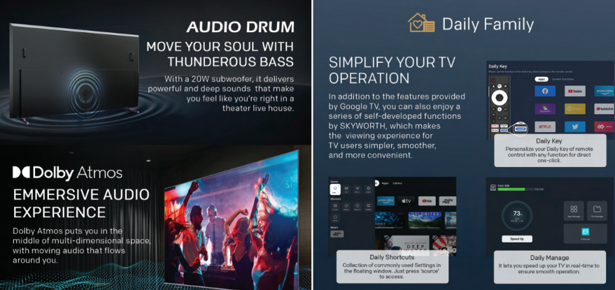 SYSTEM | CPU | A73*4-1.5GHZ | ECOSYSTEM | OS | GOOGLE TV | PICTURE | PANEL | QLED+ / LOCAL DIMMING |